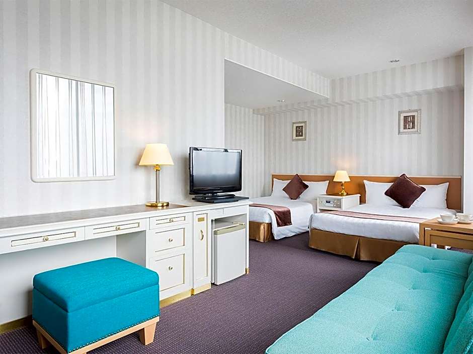 Fitted with 2 single beds and 2 bunks, this simple air-conditioned room features carpeted floors, a satellite TV and a desk. Includes sleepwear, a fridge and an electric kettle with green tea bags. The private bathroom comes with a hairdryer and toothbrush sets.